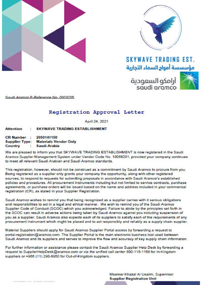 Skywave Trading And Contracting EST. has set up with a desire to contribute greatly to Middle East further economic development by cooperating on the country industrial diversification.